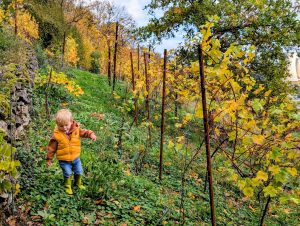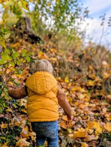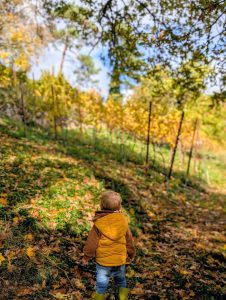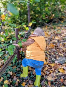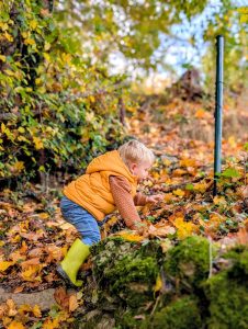 Notre petit Théo, 2 ans, se fait une joie de gambader dans les allées du jardin, d’escalader, sauter, explorer, ramasser des feuilles colorées, remplir ses poches de fruits secs, découvrir, s’émerveiller…