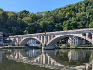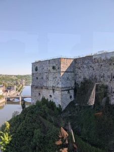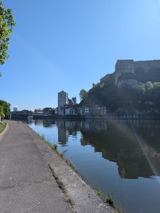 Nous longeons la Meuse jusqu’au téléphérique que nous emprunterons pour monter au parc récréatif du Mont Mosan.
