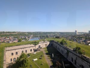 Nous survolons la Meuse, le Fort, le centre ville puis le célèbre Mur de Huy. Un moment suspendu.